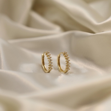 Kadın Altın Taşlı Başak Desen Halka Küpe
